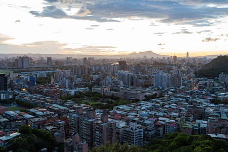 Sunset high angle view of the cityscape form Wenshan District at Taipei, Taiwan
