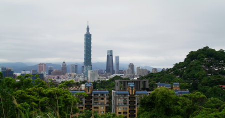 Skyline of taipei city in downtown Taipei, Taiwan.
