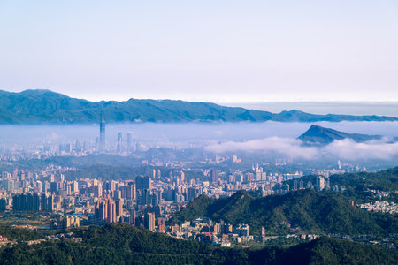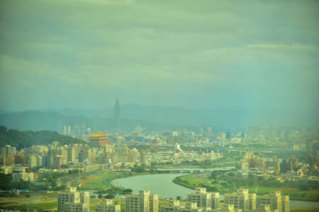 Morning sunny high angle view of the Taipei area from MaoKong at Taiwan