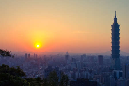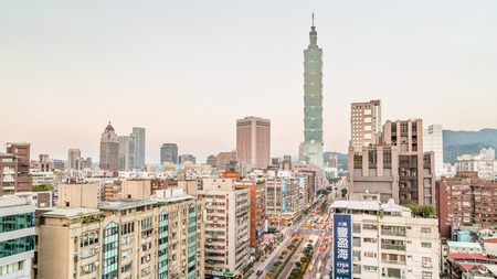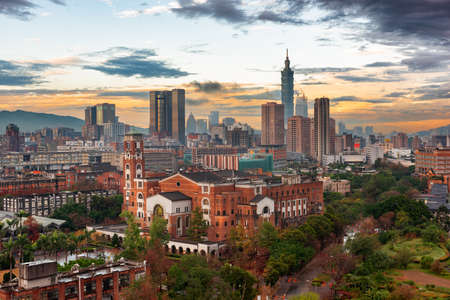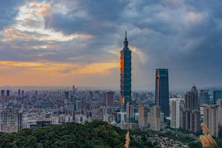 Taipei, Taiwan city skyline during the sunset.
