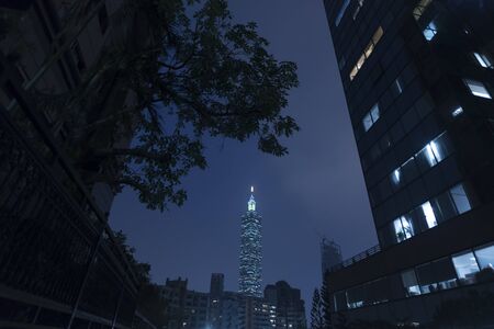TAIPEI, TAIWAN - May 16, 2019: Night of taipei city with 101 tower, Center is a landmark skyscraper in Taipei, Taiwan. The building was officially classified as the world's tallest in 2004 until 2010.