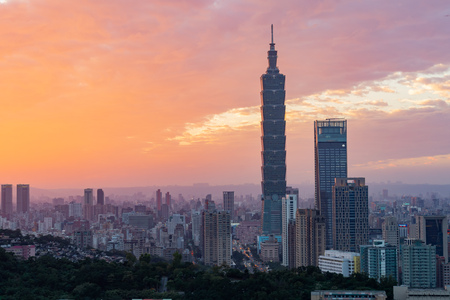 Beautiful architecture building taipei city skyline at sunset in Taiwan