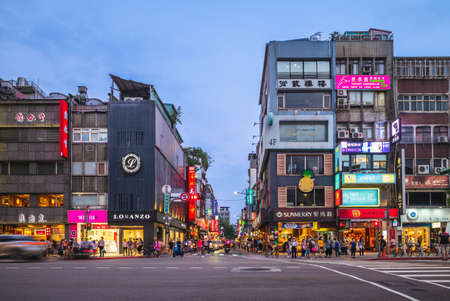 Taipei, Taiwan 09 April 2022: Taipei city street of Taiwan in the evening