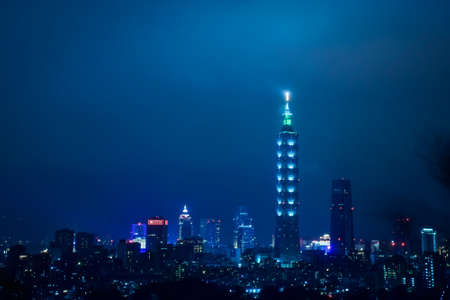 Taipei city skyline at night, Taipei 101, Taiwan.