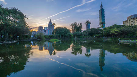 Taipei City sunrise with cityscape view of Taiwan and reflection taken during sunrise