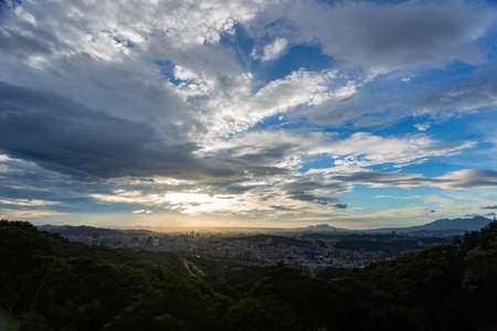 Morning sunrise high angle view of the mountains and cityscape around Wuzhi Shan at New Taipei City, Taiwan