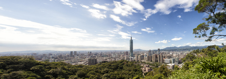 Business concept for real estate and corporate construction : panoramic modern city bird eye view with and morning cloudy blue sky from 101 building in Taipei, Taiwan