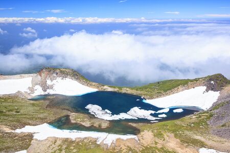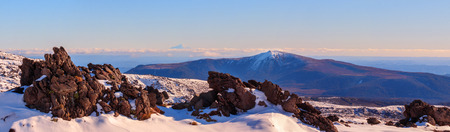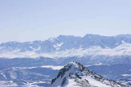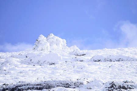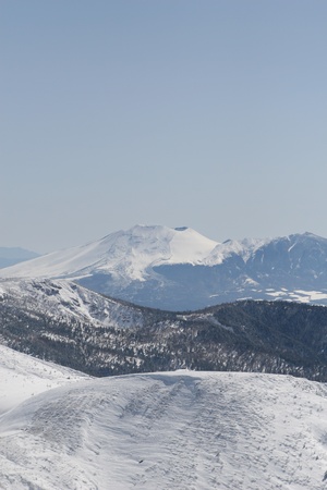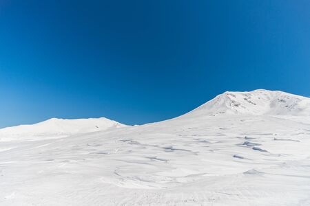 The top of the mountain in the snow. Japan. Hakkaydo. Shiretoko Peninsula. Shiretoko National Park. An excellent illustration.