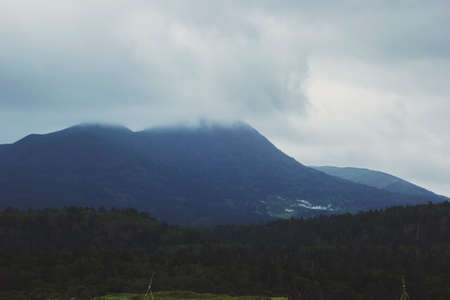 Shiretoko Goko Five Lakes area. Rolling mountain range and woodland in high latitude country springtime. Shiretoko National Park, Shiretoko Peninsula. Town Shari, Hokkaido, Japan