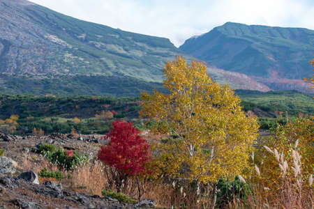 Beautiful landscape in the caldera of the Golovnin volcano on Kunashir island. Toned.