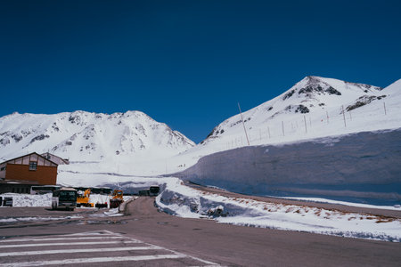 Tateyama Kurobe Alpine Route and Beautiful landscape the snow mountains view on Tateyama Japanese Alps in Japan,Toyama.
