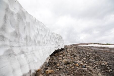 High glacier that does not have time to melt in summer, Kamchatka Peninsula, Russia.