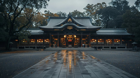 Serene Japanese Temple Traditional Architecture, Tranquility,and Cultural Heritage at Dusk