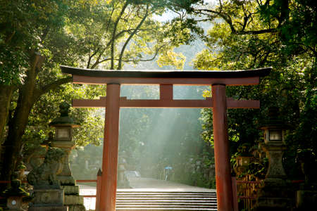 Torii gate at Shinto shrine in Kyoto, Japan.