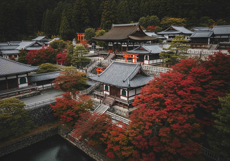 Generative AI : Aerial view of the Otonashijinja Shrine Torii Kochi Shikoku Japan