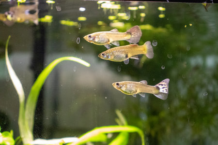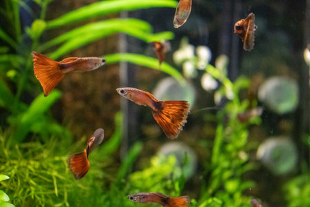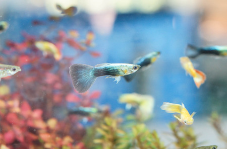 Guppys in freshwater aquarium. Poecilia reticulata.