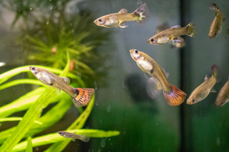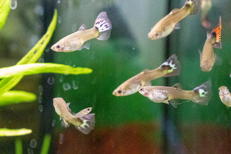 School of Guppy Fish Swimming in Freshwater Aquarium