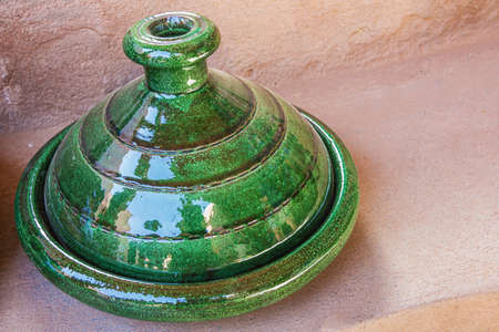 Close up of a green tajine the well known pottery of Tamegroute