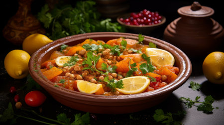 Traditional Moroccan Tagine with Lemons and Spices .Generative AI