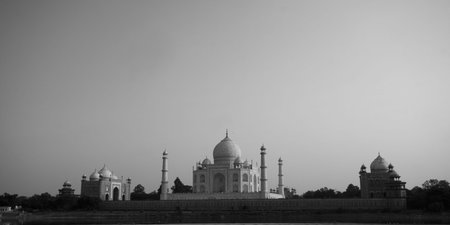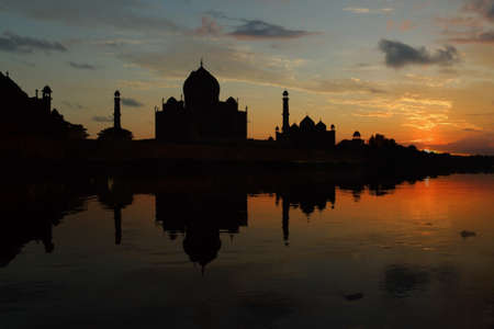 Taj Mahal during sunset and Yamuna river, in Agra , Uttar Pradesh, India