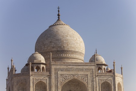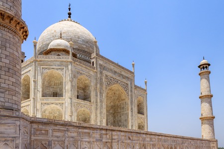 Close view on Taj Mahal with Minaret. UNESCO World Heritage in Agra, Uttar Pradesh, India