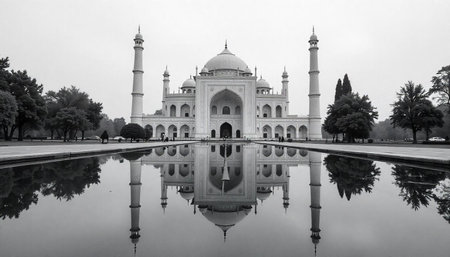 Monochromatic Taj Mahal Reflection in Water at Dawn
