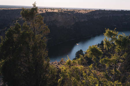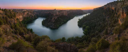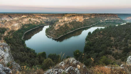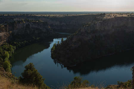 Sunset in the natural park of Las Hoces del Rio Duraton in the province of Segovia, Spain. Landscape and nature.