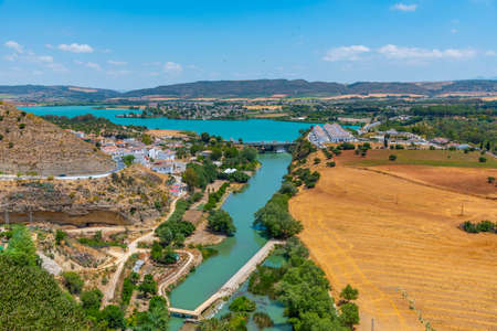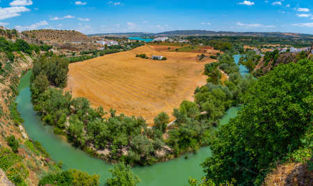 Panorama of Arcos de la Frontera, a natural expanse along the Guadalete River, in the province of Cadiz, Spain
