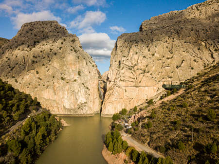 El Chorro, Spain, Camino del Rey on a bautiful mountain landscape during wintertime