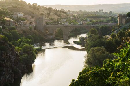 Beautiful view of the famous bridge in Toledo, Spain at sunset time