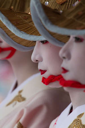 KYOTO - JULY 24 Unidentified Maiko girl or Geiko lady on parade of hanagasa in Gion Matsuri Festival held on July 24 2014 in Kyoto, Japan It is one of Kyoto s renowned three great festivals