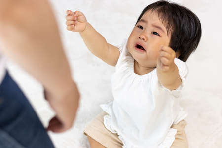 Baby (1 year old, Japanese, girl) requesting mother while crying