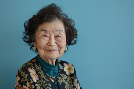 Studio portrait of a graceful senior japanese woman wearing an elegant kimono, showcasing japanese culture and tradition. Ai generative