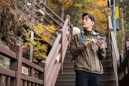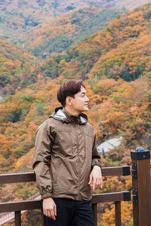 Young woman traveler enjoying beautiful autumn in Japan, Travel lifestyle concept