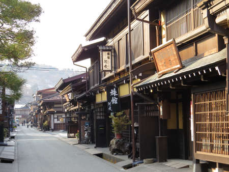 TAKAYAMA, JAPAN-JULY 12: One of the famous streets empty of Takayama on July 12,2011 in Takayama, Japan. It has an estimated population of 99,497 inhabitants and is located between the mountains of the Japanese Alps