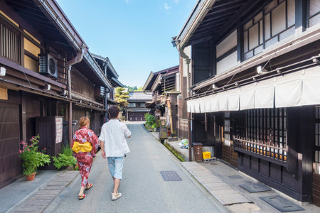 Takayama, Japan - June 05, 2017 : People visit the Old Town in Takayama, Japan. Takayama is an important tourism destination with well preserved old town.