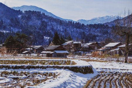 Shirakawa-Go of vintage japanese village in winter season with white snowing cover, Shirakawago Gifu, Japan is historic Japanese gassho villages,registered as UNESCO