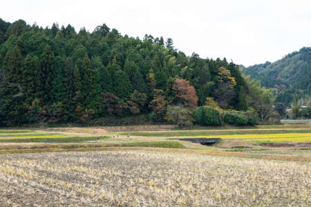 Beautiful rice terraces, rice paddy of ripe crom. Yotsuya, Aichi prefecture, Japan