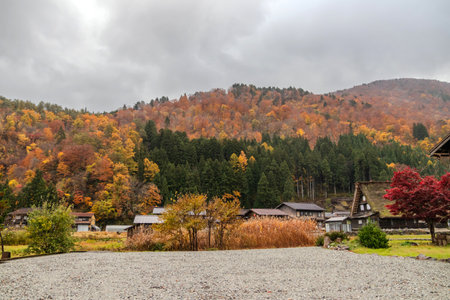 Shirakawa-go (ogimachi village) an autumn rains in Gifu Prefecture is known as a village of Gassho style house. Throughout November, begin to colors of autumn, Japan.