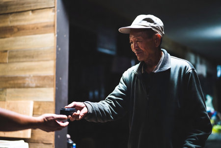 Elderly man paying with credit card in a pub or restaurant