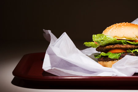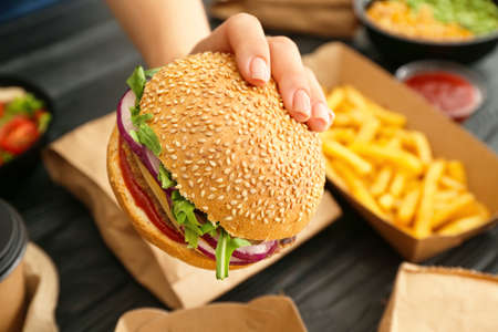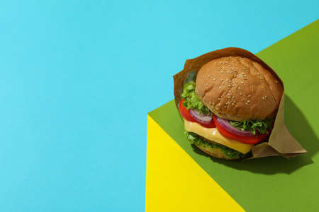 Concept of tasty food with delicious burger