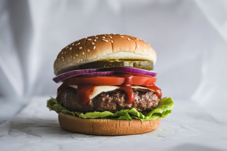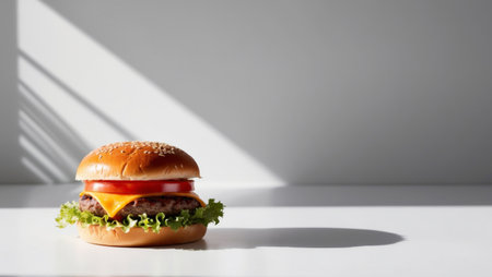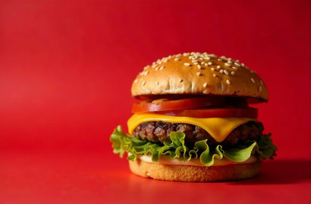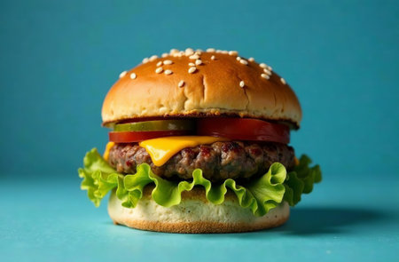 AI Generated. Juicy Hamburger with Melting Cheese and Fresh Bun
