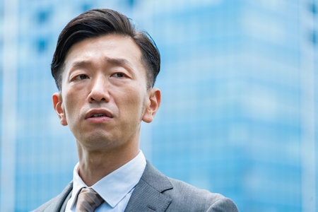 Japanese businessman walking outdoors - Asian man with elegant suit