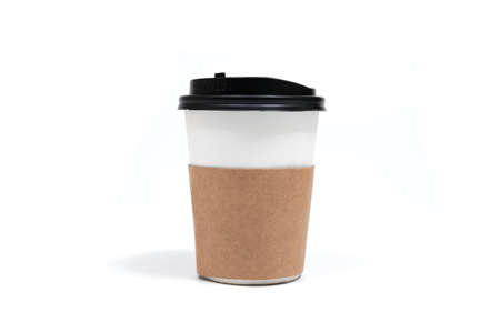 coffee to go in a disposable cup on a white background, place for text
