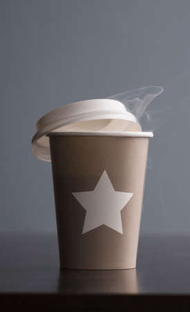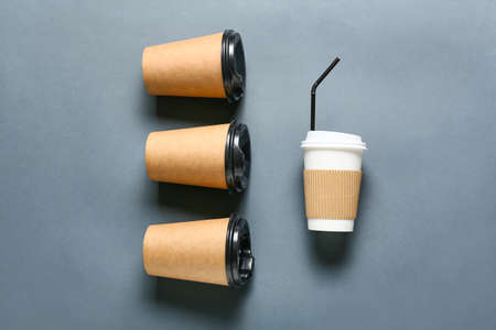 Coffee paper cup on gray blurred background