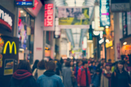 Generative AI : Abstract blurred asian crowd people tourist group walking and shopping on street market daytime and light bokeh can be used for business background Seoul Korea pers