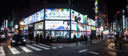 Tokyo, Japan - January 08, 2020: Tourists and Local People walking on the Beautiful Tokyo street among passing Cars in the Night time