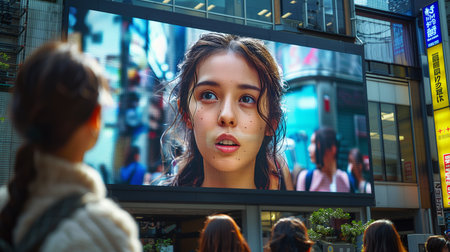 A Young Woman on a Large Digital Billboard in a Japanese City