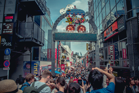 TOKYO, JAPAN - MARCH 30 2016: Takeshita Street(Takeshita Dori) in Harajuku. Takeshita Dori is considered a birthplace of Japan's fashion trends.