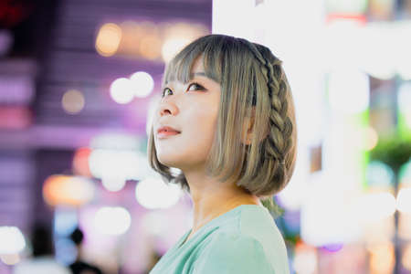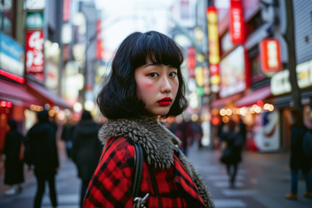 young beautiful hipster woman in the city streets of Tokyo, Japan